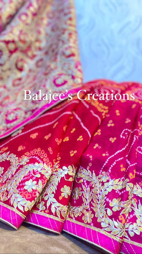Royal Blue Pure Crepe Saree with Bandhani and Gottapati work. This comes with a stiched medium size ( Chest 36- 38 inches) blouse.
